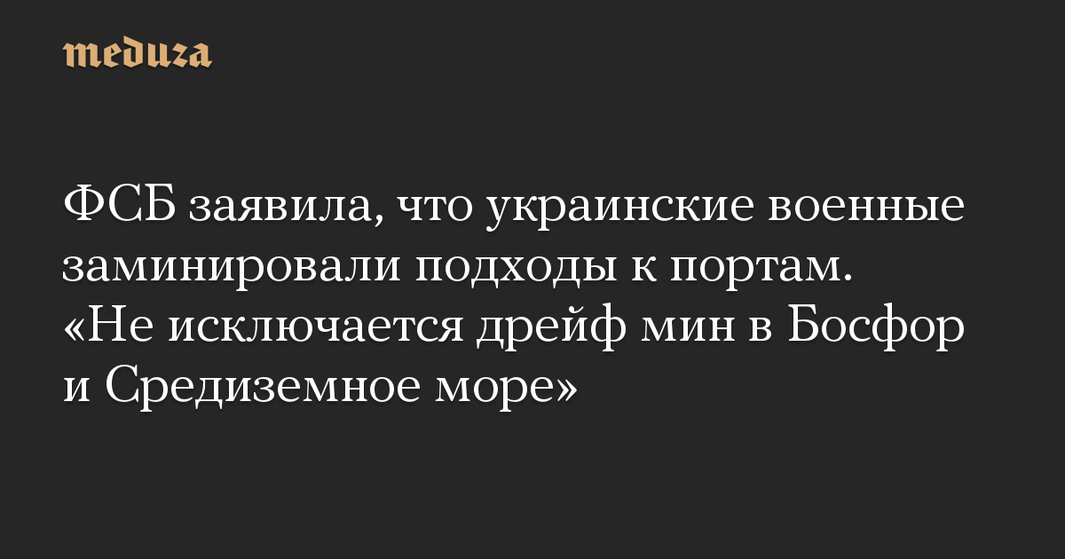 ФСБ заявила, что украинские военные заминировали подходы к портам. «Не исключается дрейф мин в Босфор и Средиземное море»