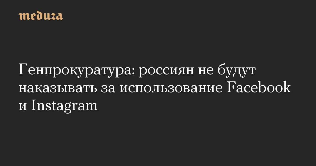 Генпрокуратура: россиян не будут наказывать за использование Facebook и Instagram