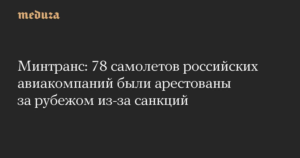 Российские авиакомпании потеряли 78 самолетов — их арестовали за границей из-за санкций против России. Об этом рассказал глава Минтранса Виталий Савельев, сообщают «Интерфакс» и РИА Новости.