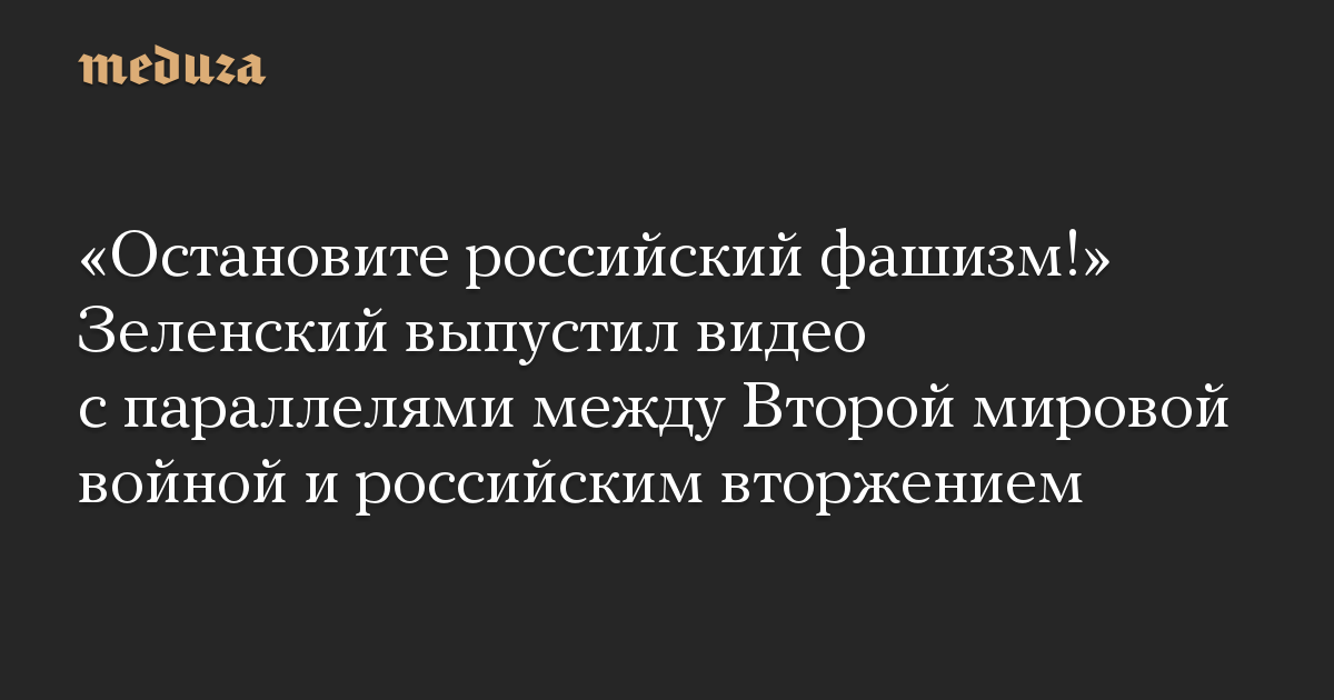«Остановите российский фашизм!» Зеленский выпустил видео с параллелями между Второй мировой войной и российским вторжением