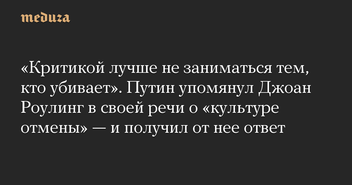 «Критикой лучше не заниматься тем, кто убивает». Путин упомянул Джоан Роулинг в своей речи о «культуре отмены» — и получил от нее ответ