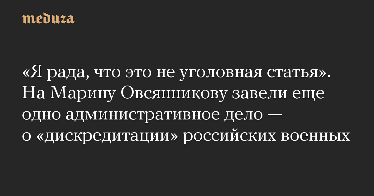 Сама Овсянникова сообщила «Медузе», что сейчас едет на консультацию с адвокатами. «Я рада, что это не уголовная статья. Значит я смогу и дальше бороться за правду», — отметила она.