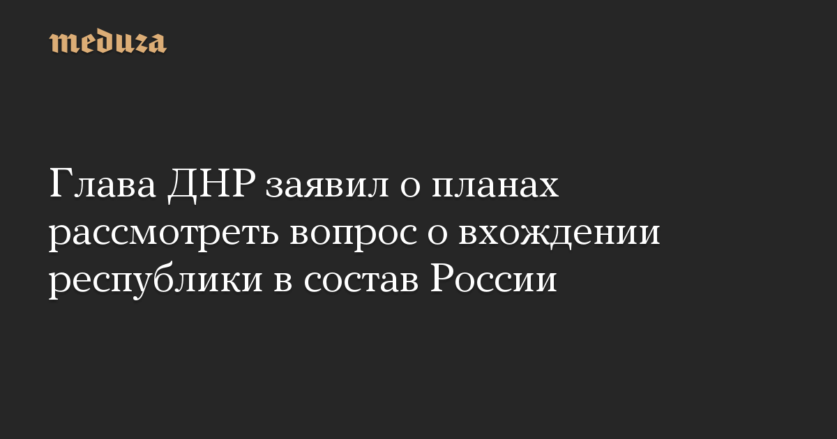 Глава самопровозглашенной Донецкой народной республики Денис Пушилин заявил, что ДНР рассмотрит вопрос о вхождении в состав России. Он заявил на пресс-конференции в Донецке, что этот вопрос будет поднят после того, как ДНР установит контроль над всей Донецкой областью Украины.