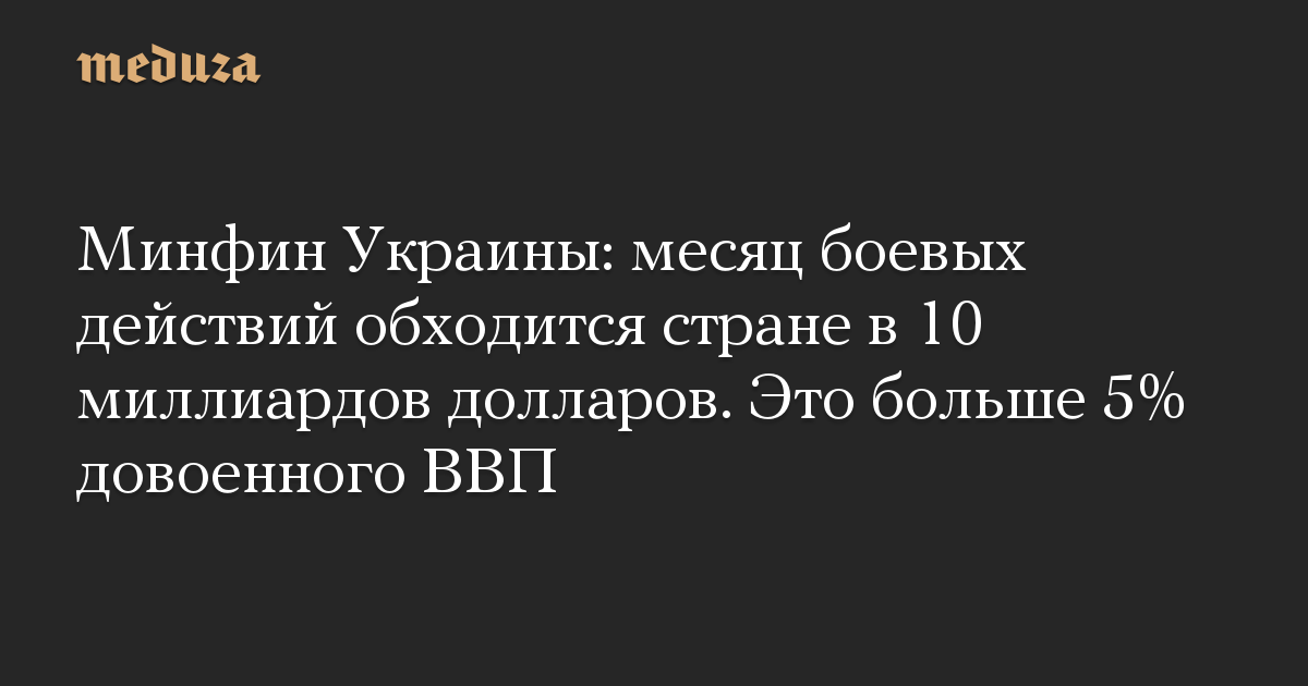 Минфин Украины: месяц боевых действий обходится стране в 10 миллиардов долларов. Это больше 5% довоенного ВВП