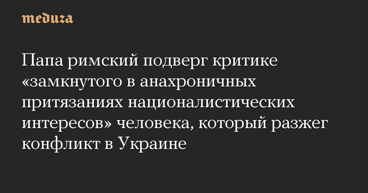 Папа римский подверг критике «замкнутого в анахроничных притязаниях националистических интересов» человека, который разжег конфликт в Украине