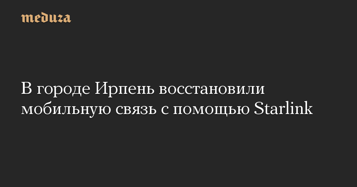 В городе Ирпень Киевской области и его пригороде Романовке, которые несколько дней назад освободили от российских войск, восстановили мобильную связь с помощью оборудования проекта спутникового интернета Starlink компании SpaceX. Об этом в фейсбуке сообщила пресс-секретарь мобильного оператора Vodafone в Украине Виктория Рубан.