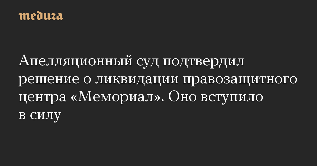 Апелляционный суд подтвердил решение о ликвидации правозащитного центра «Мемориал». Оно вступило в силу