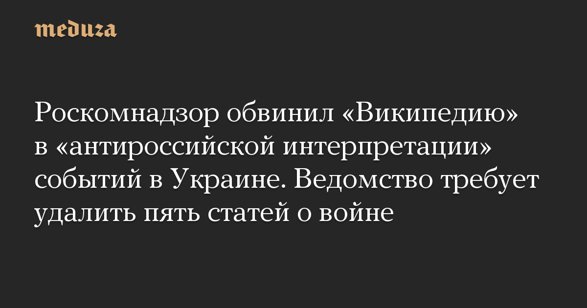 Роскомнадзор обвинил «Википедию» в «антироссийской интерпретации» событий в Украине. Ведомство требует удалить пять статей о войне