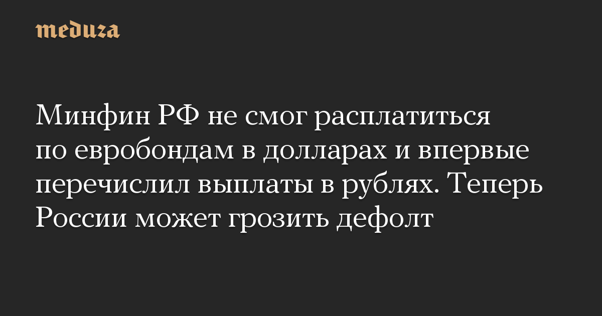 Минфин РФ не смог расплатиться по евробондам в долларах и впервые перечислил выплаты в рублях. Теперь России может грозить дефолт