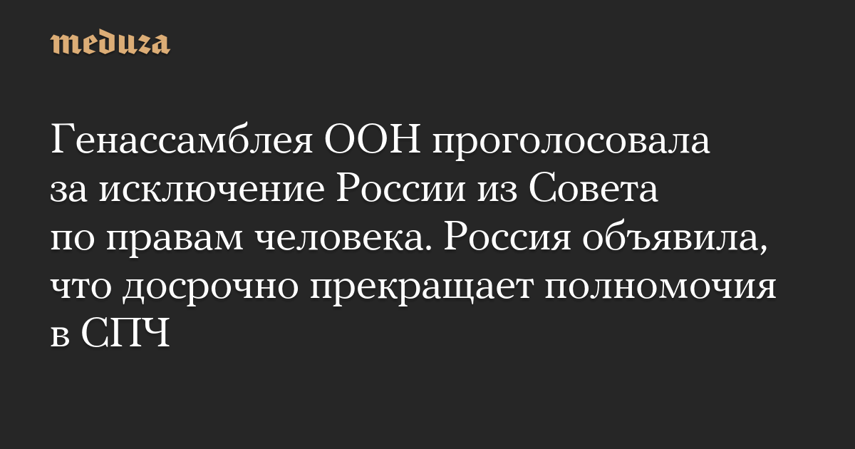 Генассамблея ООН проголосовала за исключение России из Совета по правам человека. Россия объявила, что досрочно прекращает полномочия в СПЧ