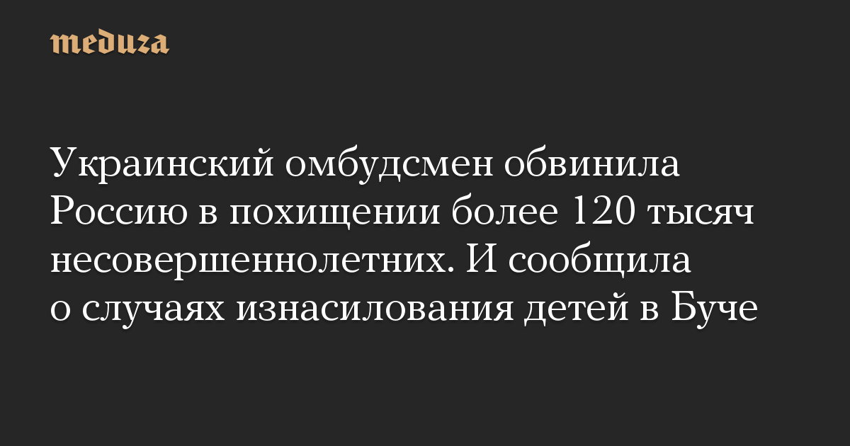 Украинский омбудсмен обвинила Россию в похищении более 120 тысяч несовершеннолетних. И сообщила о случаях изнасилования детей в Буче