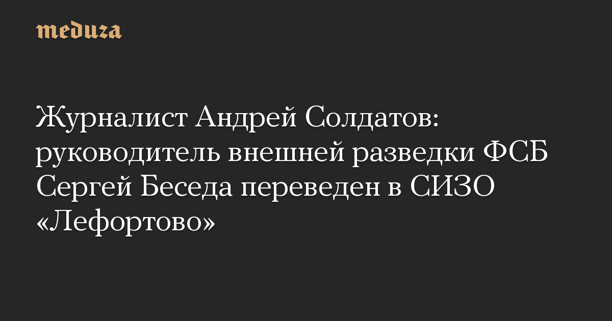 Журналист Андрей Солдатов: руководитель внешней разведки ФСБ Сергей Беседа переведен в СИЗО «Лефортово»