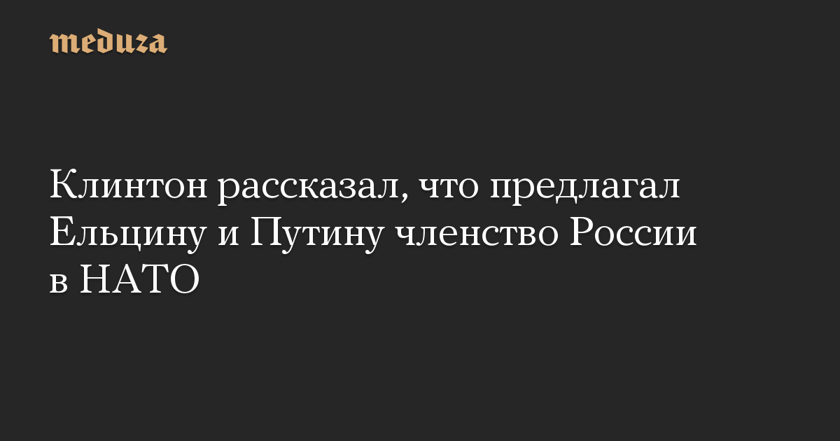 42-й президент США Билл Клинтон рассказал в колонке для The Atlantic, что во время своего президентского срока он предлагал первому президенту РФ Борису Ельцину, а затем и его преемнику Владимиру Путину, чтобы Россия стала членом НАТО.
