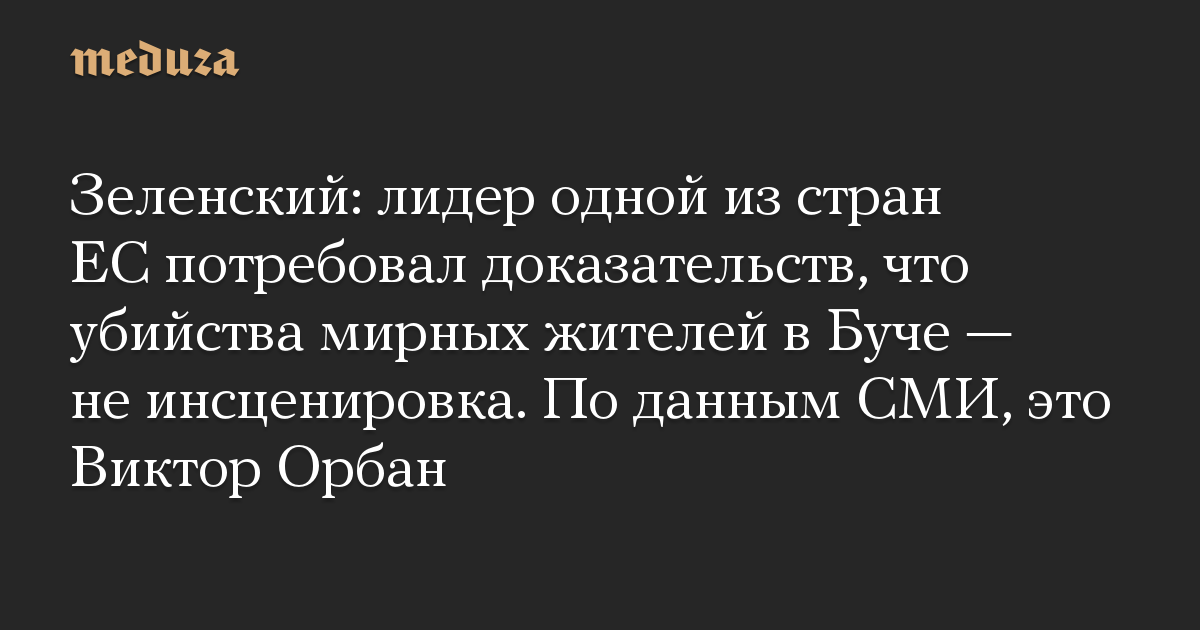 Зеленский: лидер одной из стран ЕС потребовал доказательств, что убийства мирных жителей в Буче — не инсценировка. По данным СМИ, это Виктор Орбан