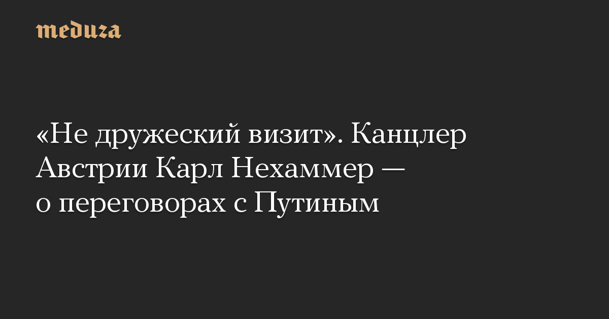 «Не дружеский визит». Канцлер Австрии Карл Нехаммер — о переговорах с Путиным