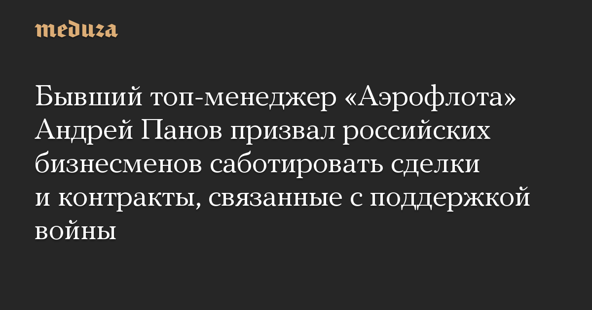 Бывший топ-менеджер «Аэрофлота» Андрей Панов призвал российских бизнесменов саботировать сделки и контракты, связанные с поддержкой войны