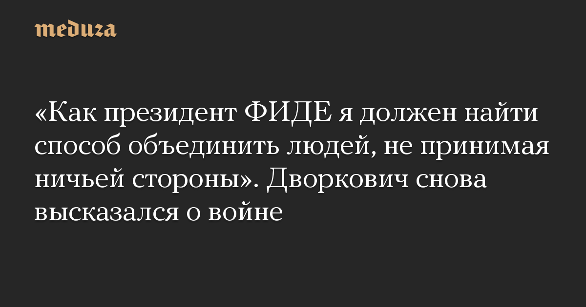 «Как президент ФИДЕ я должен найти способ объединить людей, не принимая ничьей стороны». Дворкович снова высказался о войне