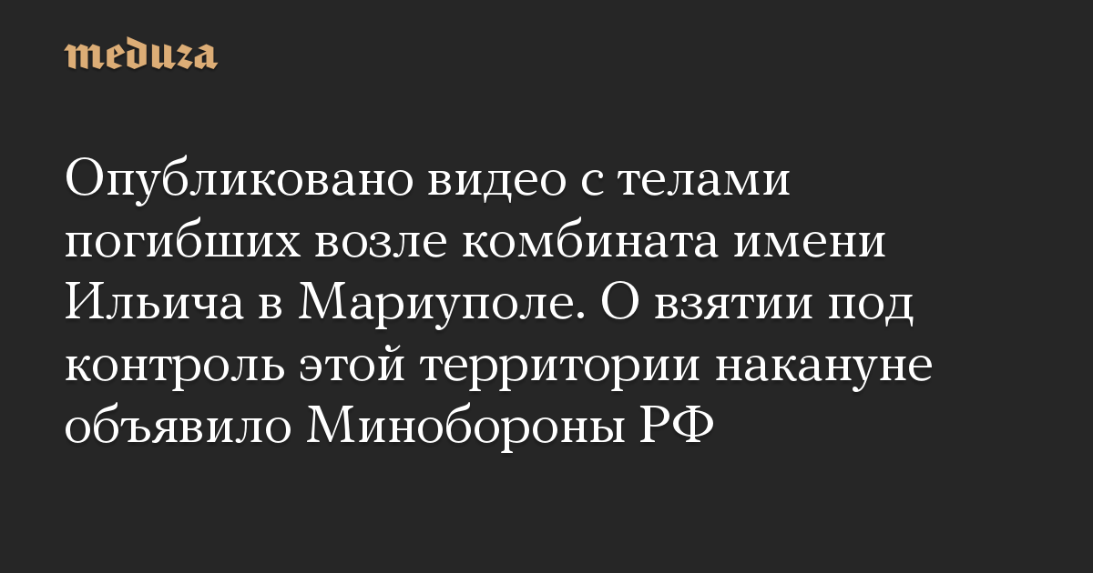 Опубликовано видео с телами погибших возле комбината имени Ильича в Мариуполе. О взятии под контроль этой территории накануне объявило Минобороны РФ