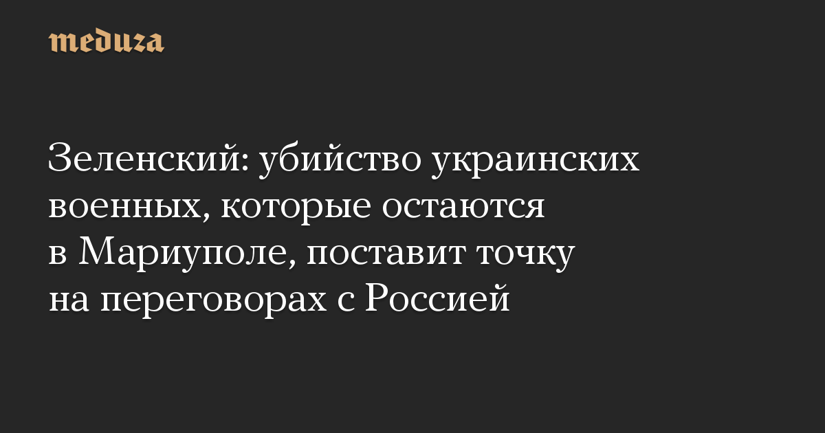Зеленский: убийство украинских военных, которые остаются в Мариуполе, поставит точку на переговорах с Россией