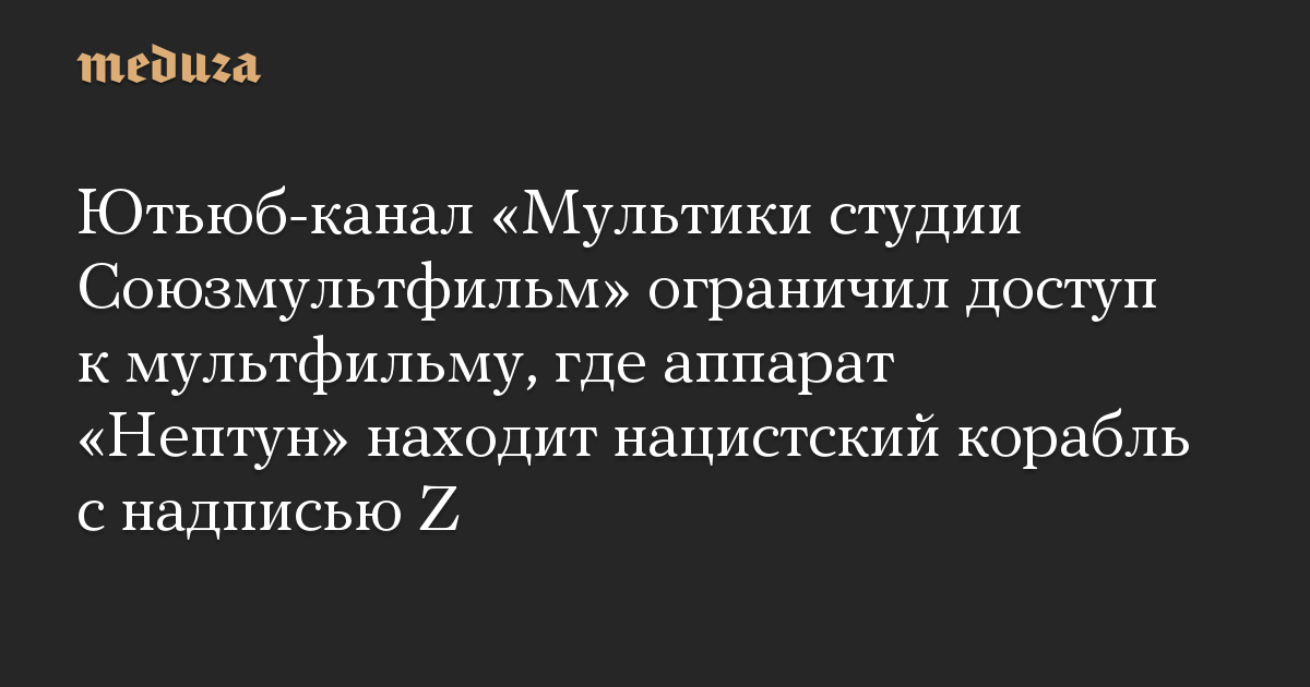 Ютьюб-канал «Мультики студии Союзмультфильм» ограничил доступ к мультфильму, где аппарат «Нептун» находит нацистский корабль с надписью Z