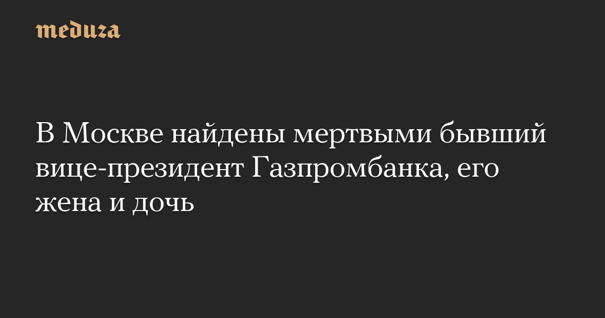 В Москве найдены мертвыми бывший вице-президент Газпромбанка, его жена и дочь