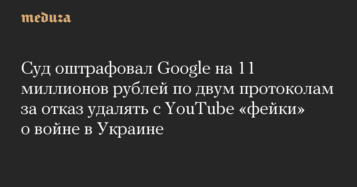 Суд оштрафовал Google на 11 миллионов рублей по двум протоколам за отказ удалять с YouTube «фейки» о войне в Украине