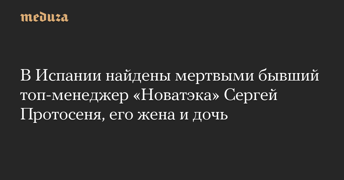 Бывший топ-менеджер компании «Новатэк» Сергей Протосеня, его жена и дочь найдены мертвыми в городе Льорет-де-Мар в Испании. Об этом сообщает телеканал Telecinco.