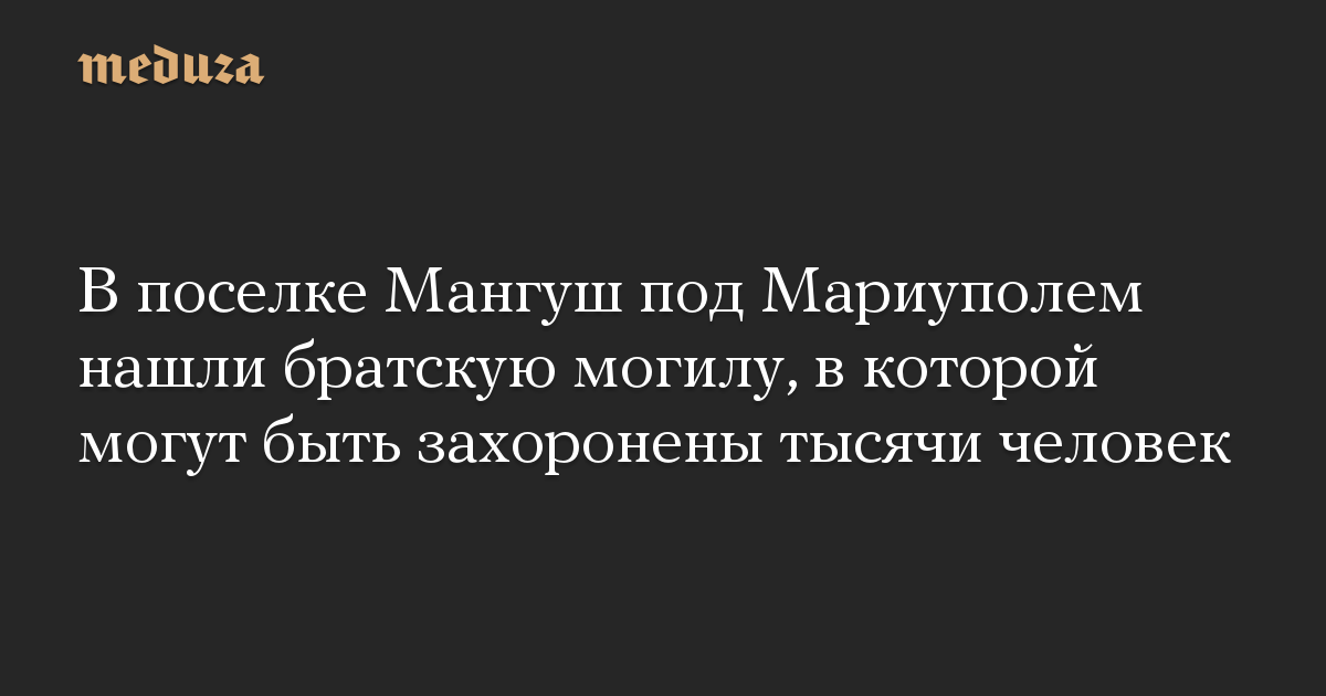 В украинском поселке Мангуш, расположенном в 20 километрах от оккупированного российскими войсками Мариуполя, обнаружена братская могила. Спутниковые снимки, на которых запечатлена траншея длиной более 300 метров, опубликовали «Схемы» (проект «Радио Свобода»).