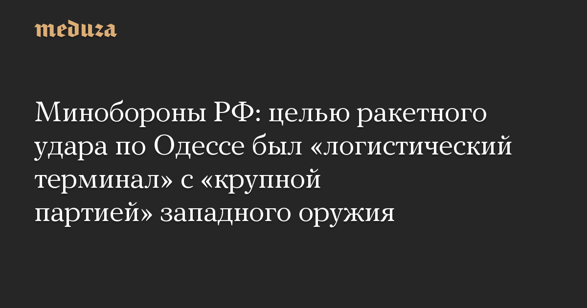 Минобороны РФ: целью ракетного удара по Одессе был «логистический терминал» с «крупной партией» западного оружия
