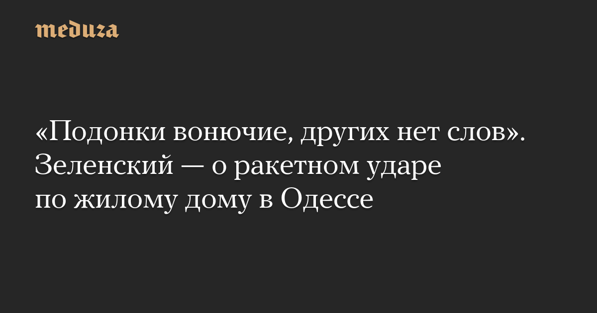 «Подонки вонючие, других нет слов». Зеленский — о ракетном ударе по жилому дому в Одессе