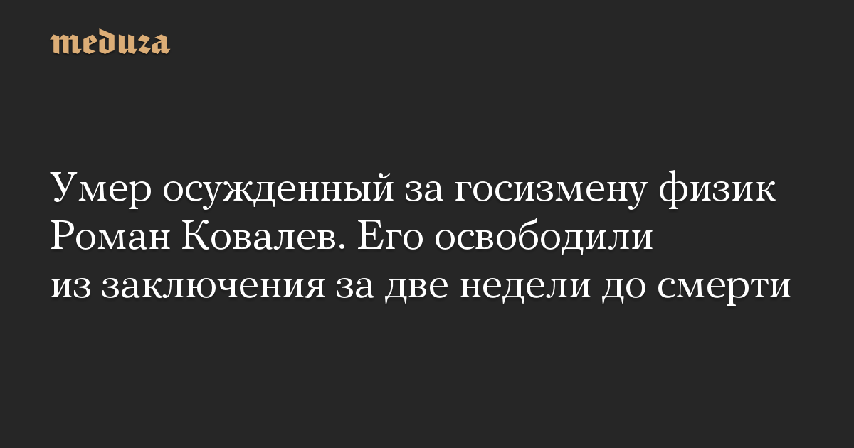 Умер осужденный за госизмену физик Роман Ковалев. Его освободили из заключения за две недели до смерти