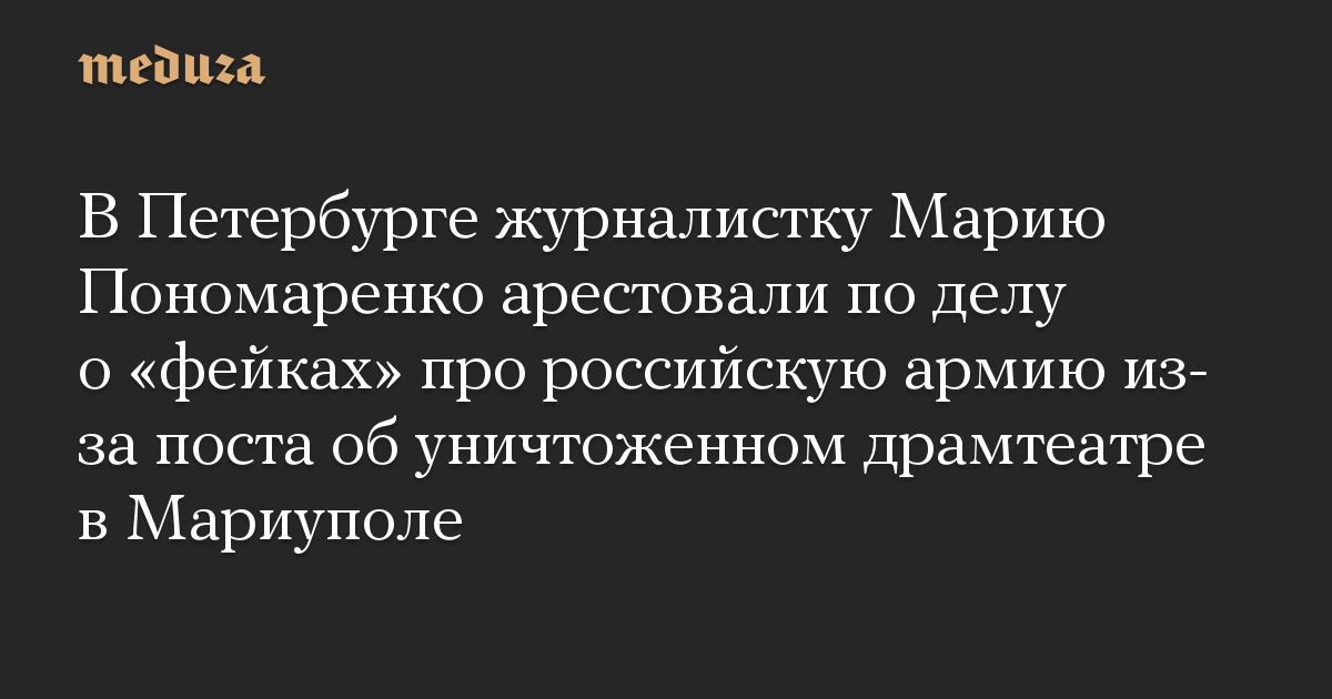 В Петербурге журналистку Марию Пономаренко арестовали по делу о «фейках» про российскую армию из-за поста об уничтоженном драмтеатре в Мариуполе