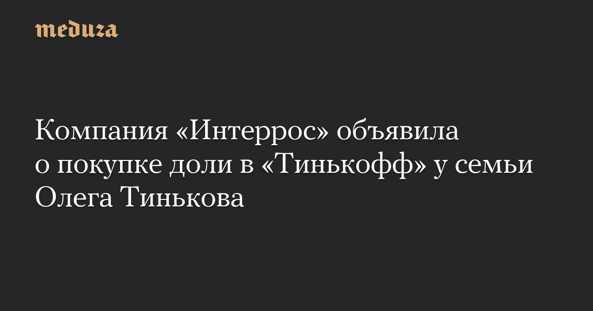 Компания «Интеррос» объявила о покупке доли в «Тинькофф» у семьи Олега Тинькова