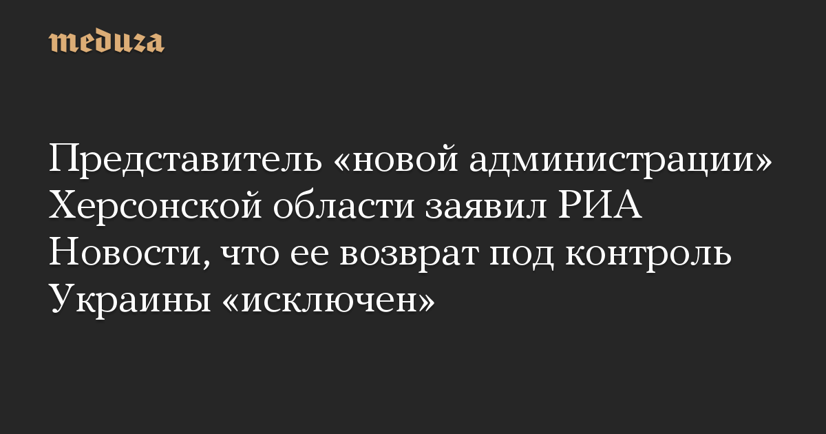Представитель «новой администрации» Херсонской области заявил РИА Новости, что ее возврат под контроль Украины «исключен»