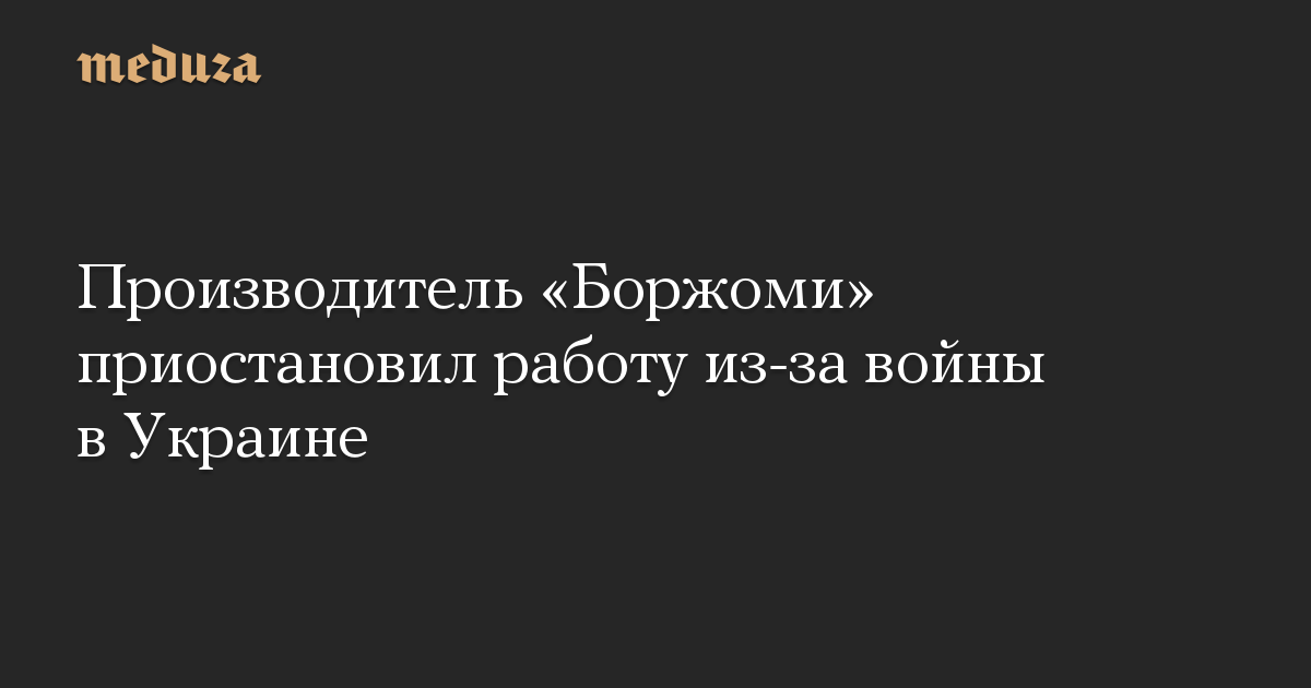 Грузинская компания IDS Borjomi, выпускающая минеральную воду под брендом «Боржоми», с 29 апреля временно прекращает производство на обоих разливочных заводах в Грузии в связи с финансовыми трудностями на фоне войны в Украине.