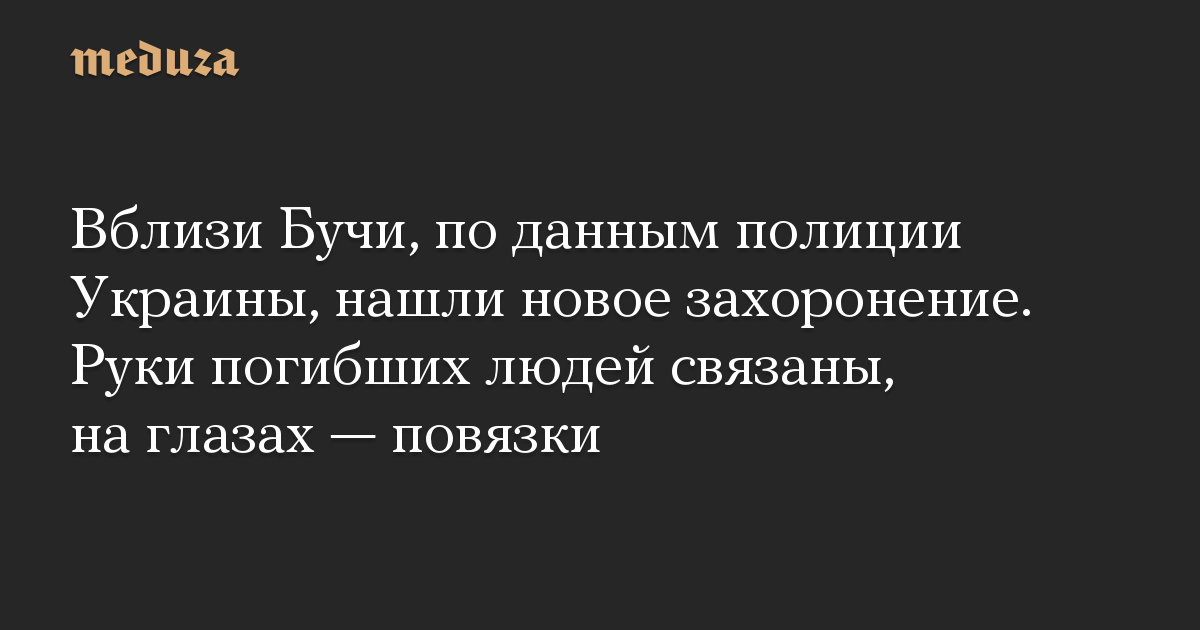 Вблизи Бучи, по данным полиции Украины, нашли новое захоронение. Руки погибших людей связаны, на глазах — повязки