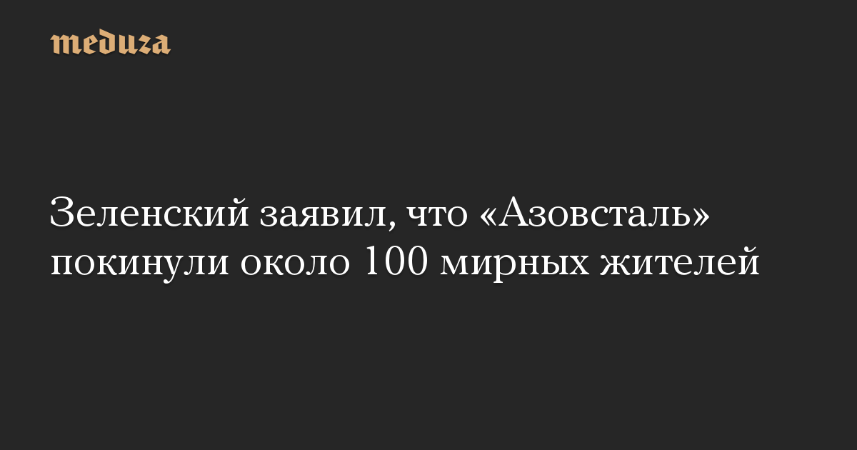 Зеленский заявил, что «Азовсталь» покинули около 100 мирных жителей