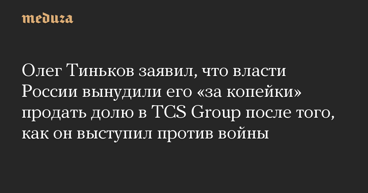 Олег Тиньков заявил, что власти России вынудили его «за копейки» продать долю в TCS Group после того, как он выступил против войны
