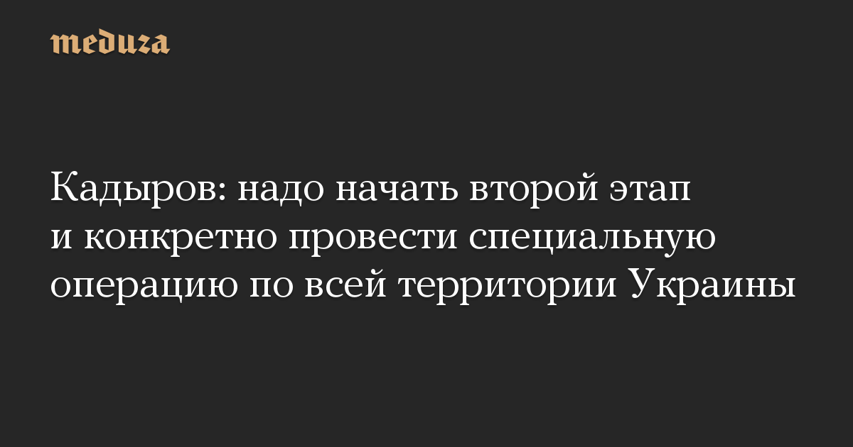 Кадыров: надо начать второй этап и конкретно провести специальную операцию по всей территории Украины
