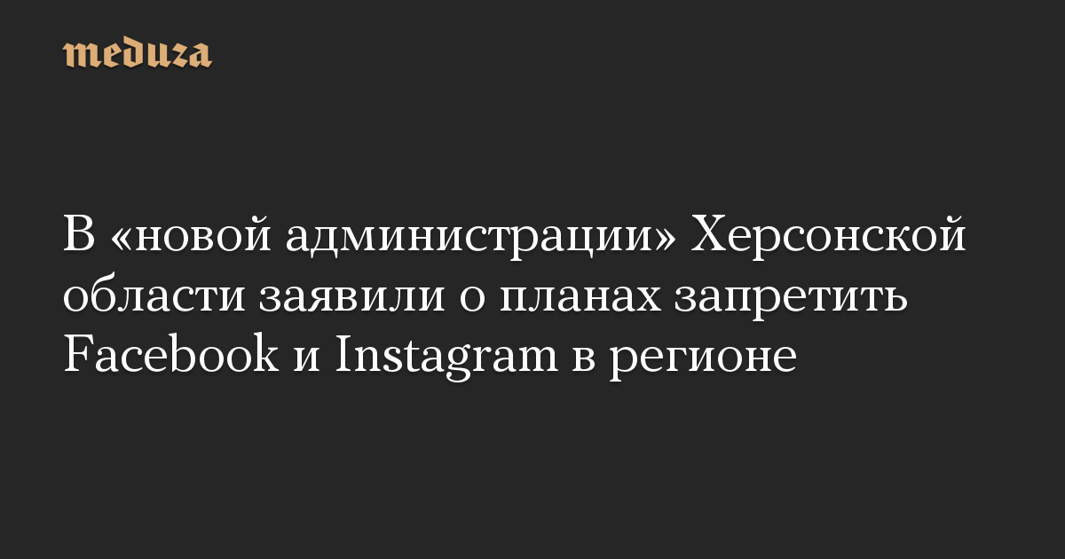 В «новой администрации» Херсонской области заявили о планах запретить Facebook и Instagram в регионе