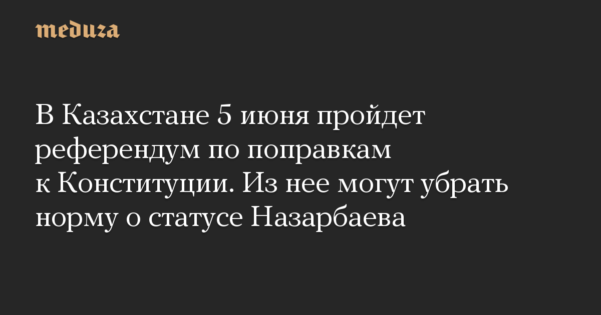 В Казахстане 5 июня пройдет референдум по поправкам к Конституции. Из нее могут убрать норму о статусе Назарбаева