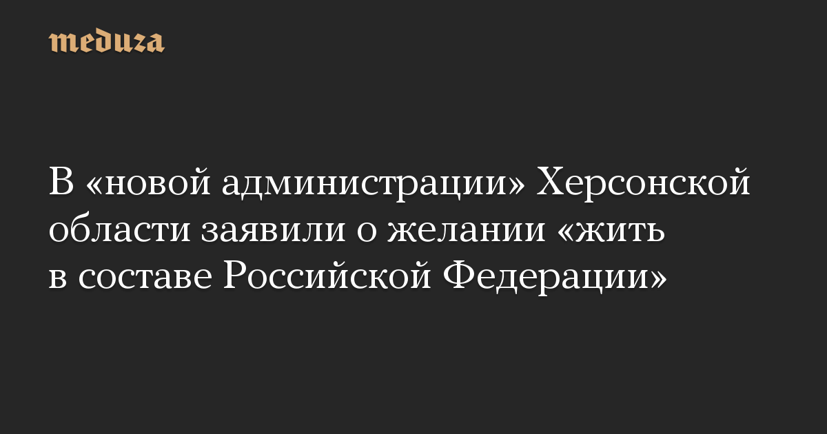 Источники «Медузы» и других СМИ, а также власти Украины и разведки западных стран утверждают, что Россия собирается провести в Херсонской области референдум о создании «Херсонской народной республики». Власти России это отрицают.