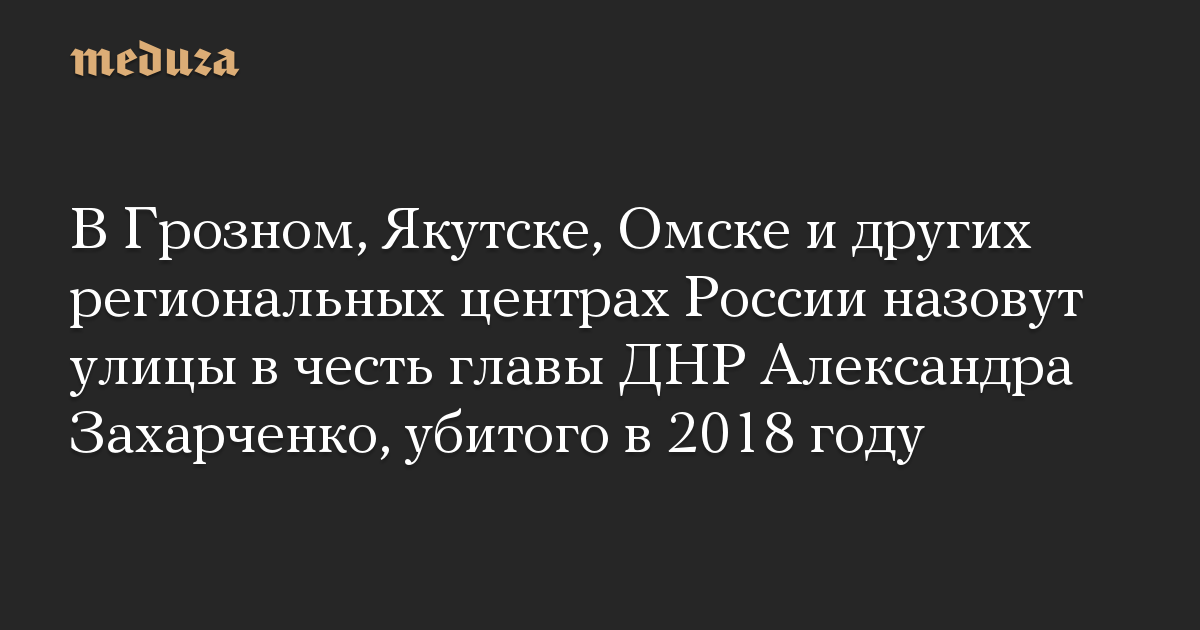 В ряде российских региональных центров появятся улицы, названные в честь убитого в 2018 году главы ДНР Александра Захарченко. В большинстве случаев об инициативах было объявлено 9 мая или накануне.