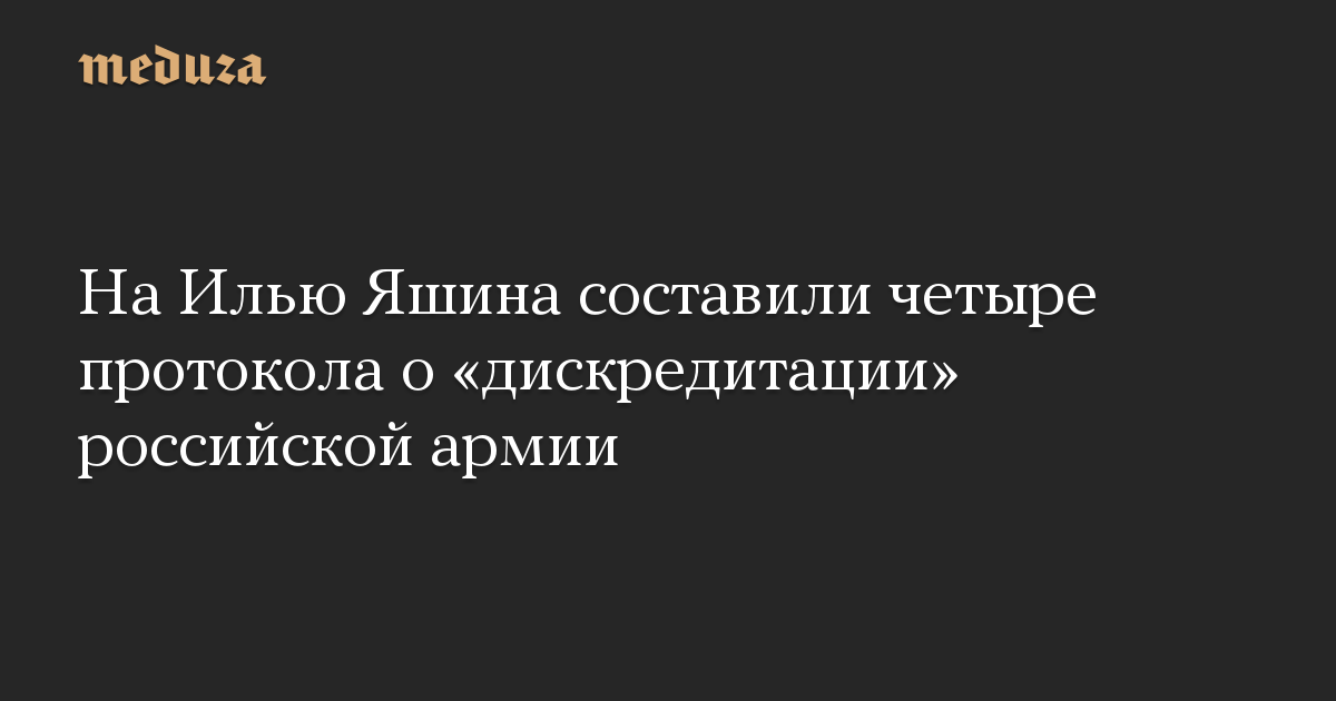 Полиция Москвы составила четыре административных протокола на политика Илью Яшина по статье 20.3.3 КоАП («дискредитация использования российских войск в целях защиты интересов России и поддержания международного мира и безопасности»).
