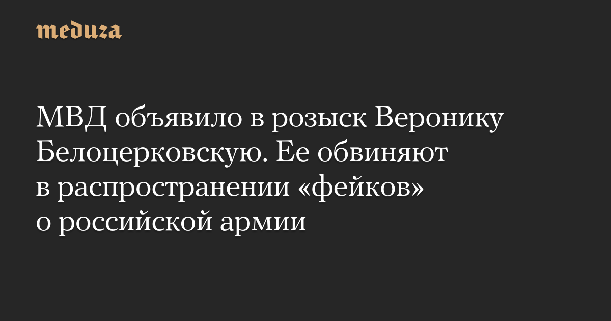 МВД объявило в розыск Веронику Белоцерковскую. Ее обвиняют в распространении «фейков» о российской армии