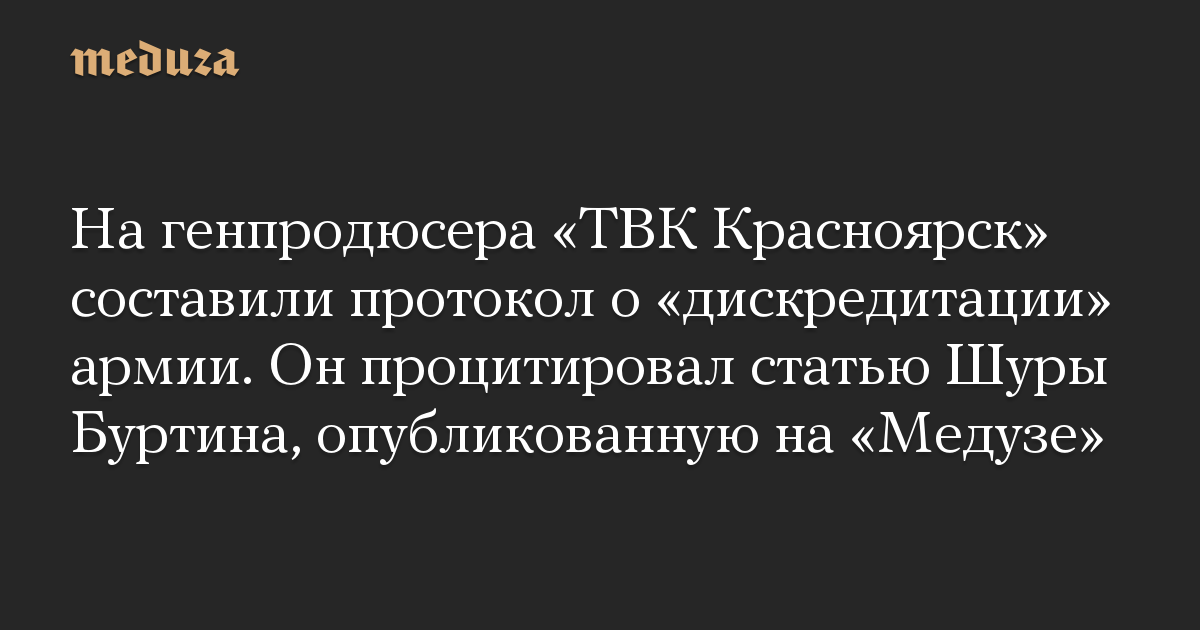 На генпродюсера «ТВК Красноярск» составили протокол о «дискредитации» армии. Он процитировал статью Шуры Буртина, опубликованную на «Медузе»