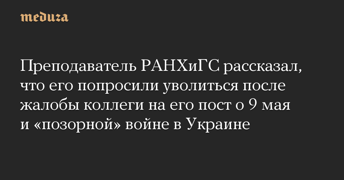 Преподаватель РАНХиГС рассказал, что его попросили уволиться после жалобы коллеги на его пост о 9 мая и «позорной» войне в Украине
