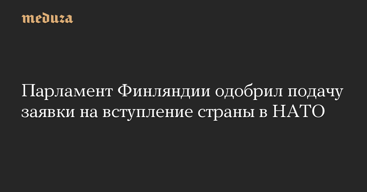 Парламент Финляндии на заседании во вторник одобрил подачу заявки на вступление страны в Североатлантический альянс.