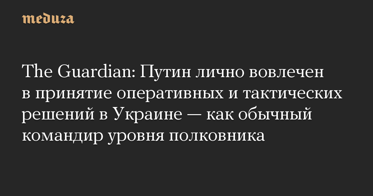 The Guardian: Путин лично вовлечен в принятие оперативных и тактических решений в Украине — как обычный командир уровня полковника