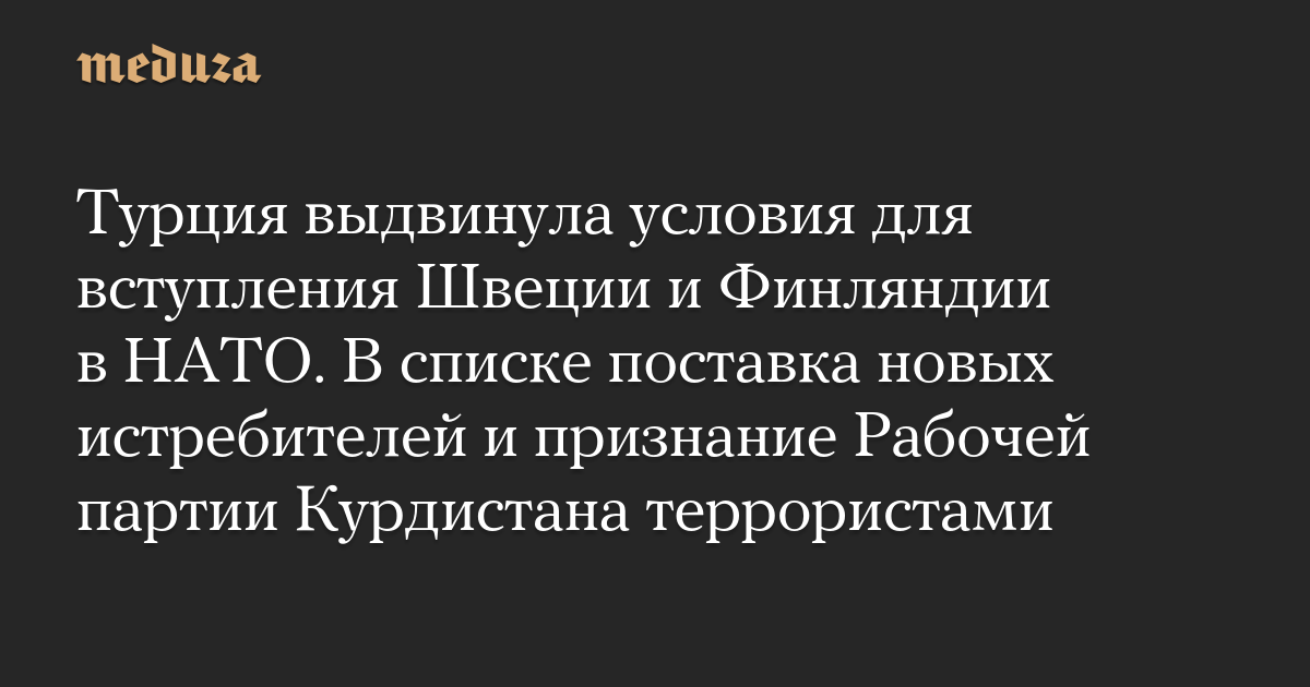 Турция выдвинула условия для вступления Швеции и Финляндии в НАТО. В списке поставка новых истребителей и признание Рабочей партии Курдистана террористами